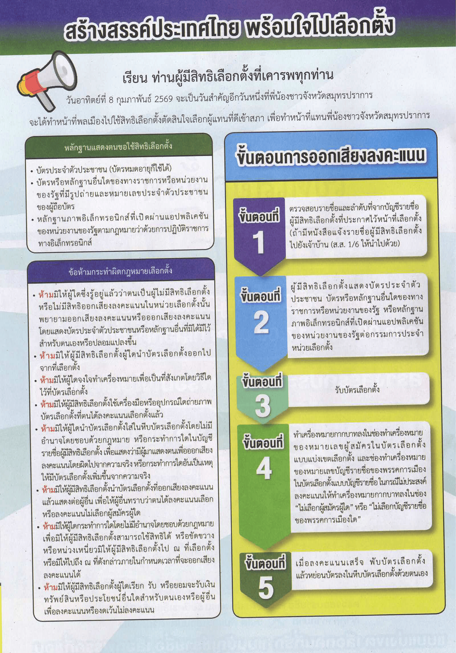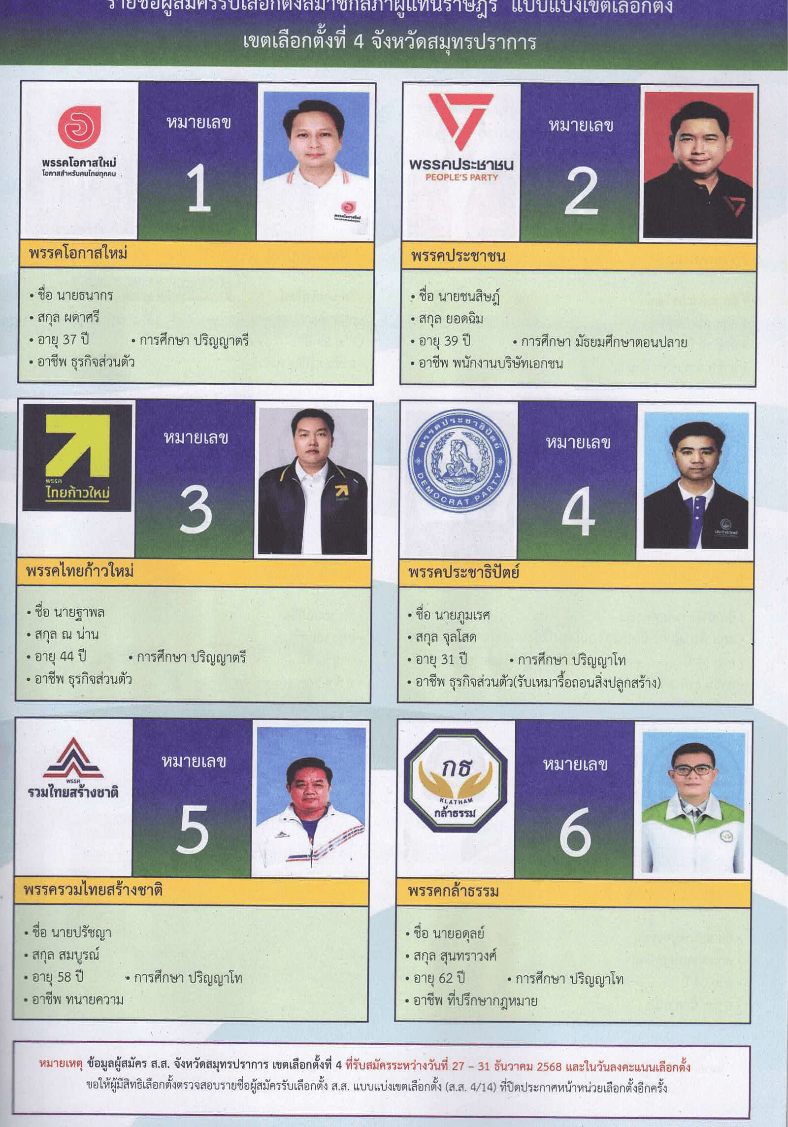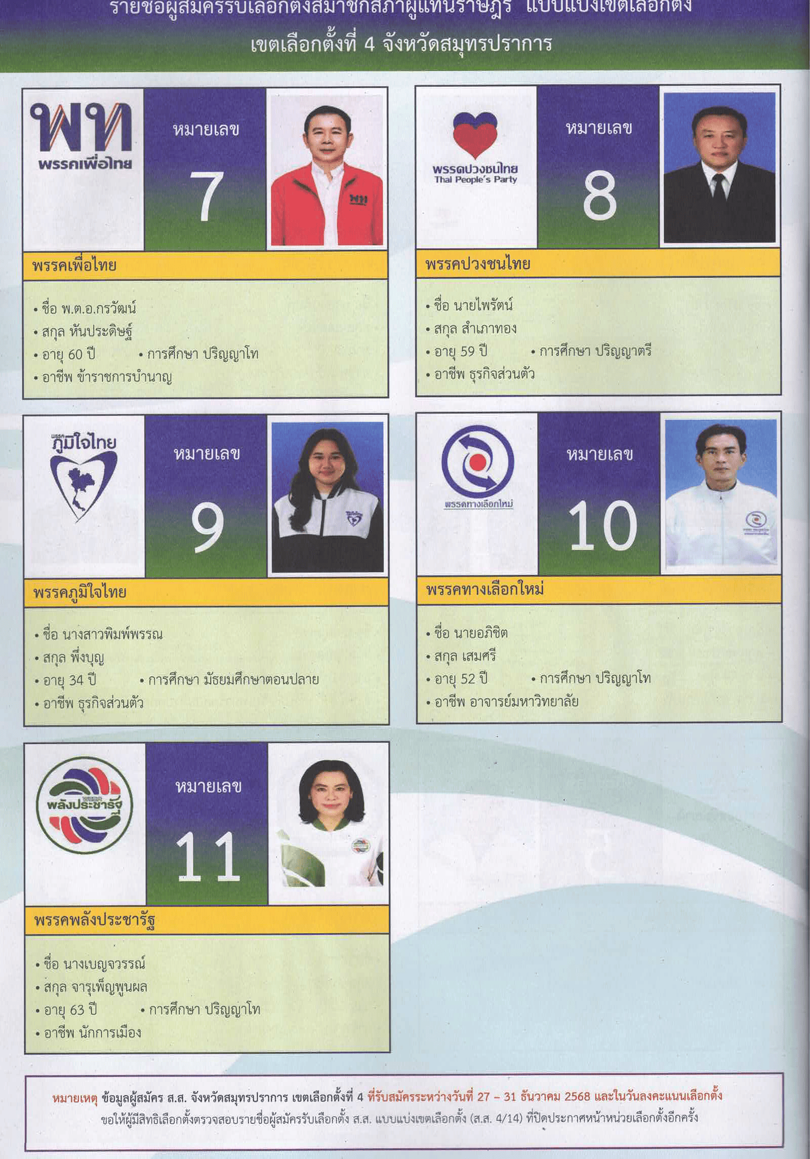 เขตการเลือกตั้งที่ 4 ในวันอาทิตย์ที่ 8 กุมภาพันธ์ 2569 เวลา 8.00-17.00 น. ณ ที่เลือกตั้งที่ท่านมีชื่อ