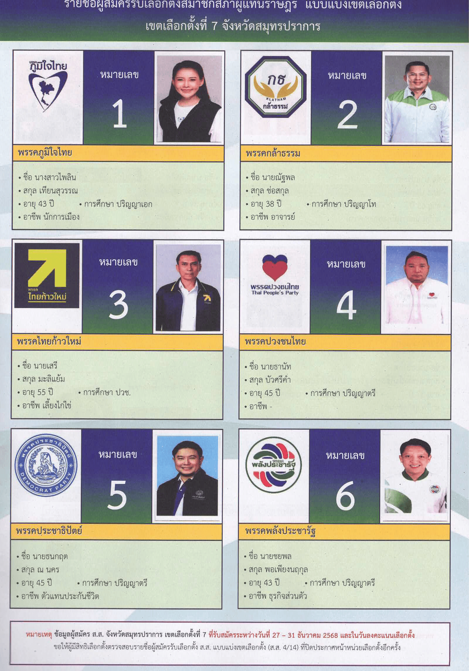 เขตการเลือกตั้งที่ 7 ในวันอาทิตย์ที่ 8 กุมภาพันธ์ 2569 เวลา 8.00-17.00 น. ณ ที่เลือกตั้งที่ท่านมีชื่อ