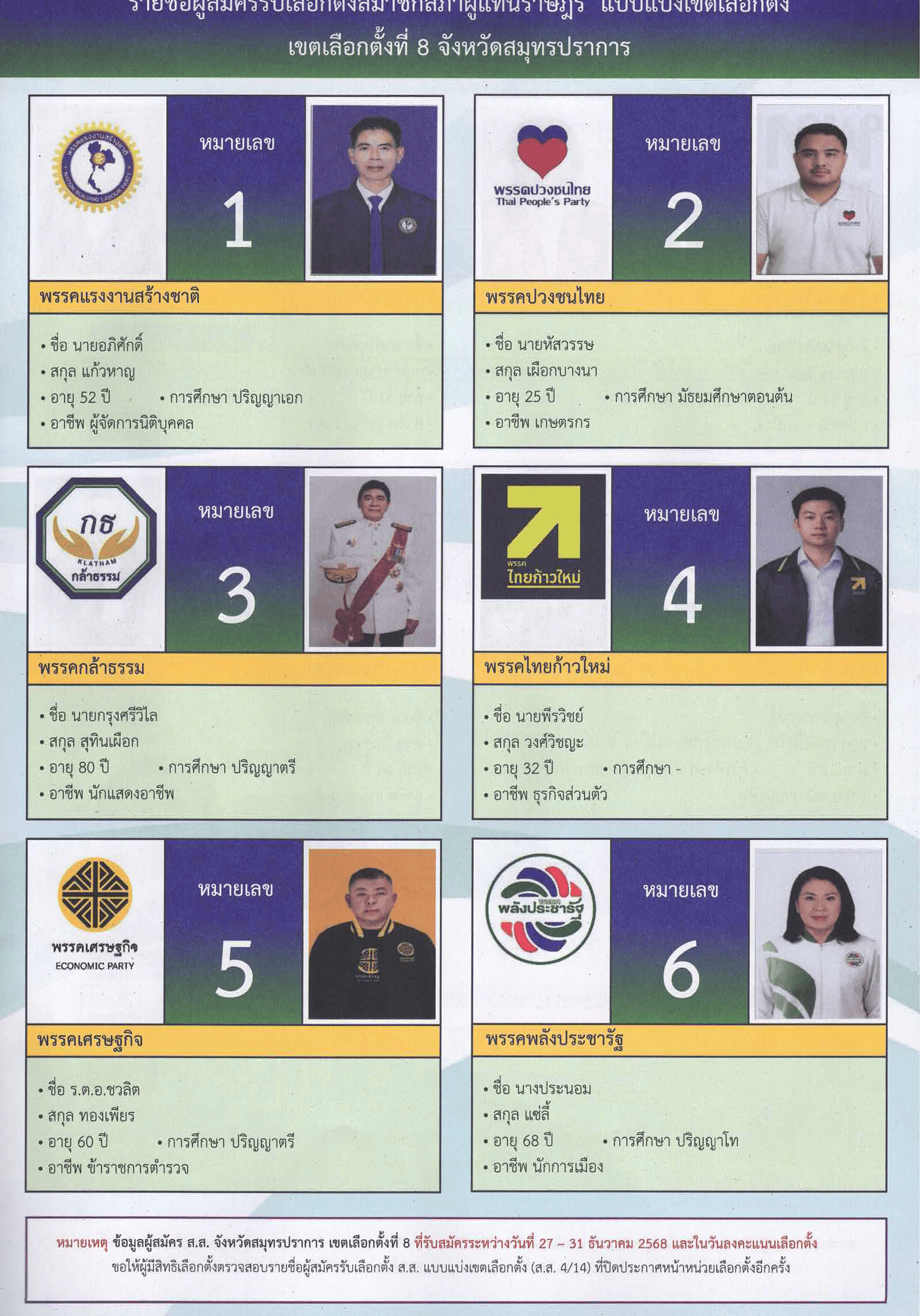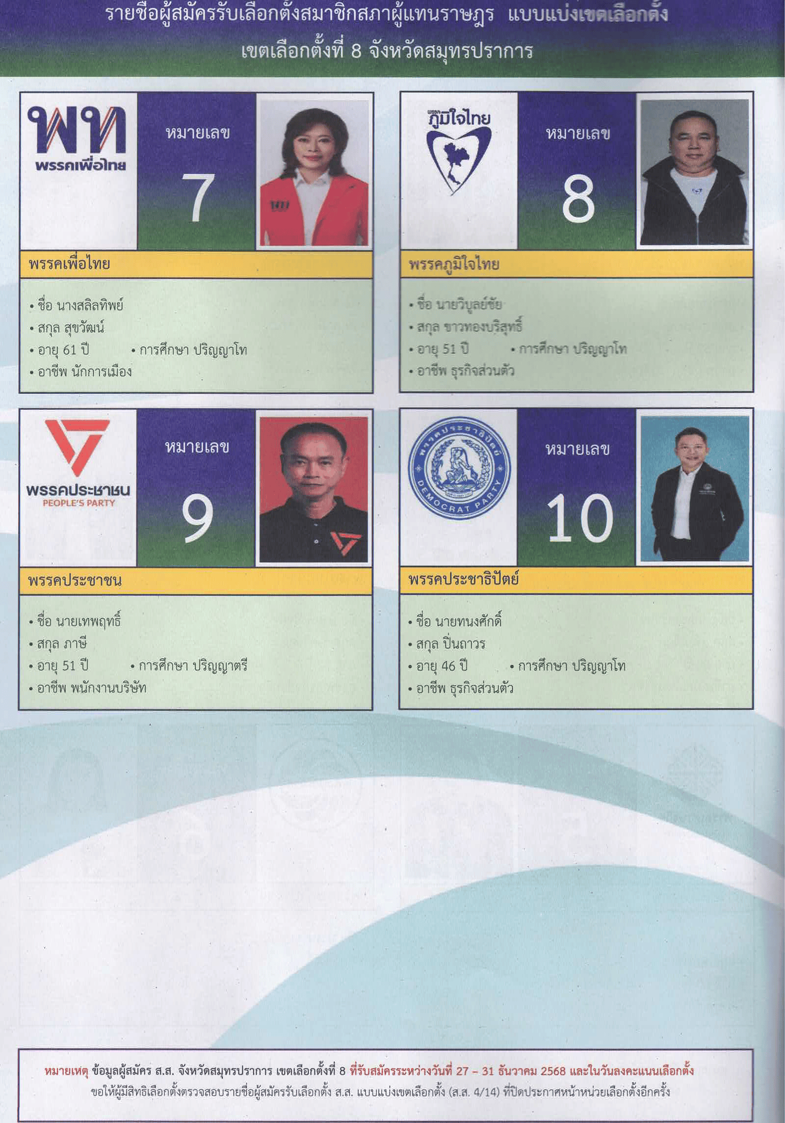 เขตการเลือกตั้งที่ 8 ในวันอาทิตย์ที่ 8 กุมภาพันธ์ 2569 เวลา 8.00-17.00 น. ณ ที่เลือกตั้งที่ท่านมีชื่อ