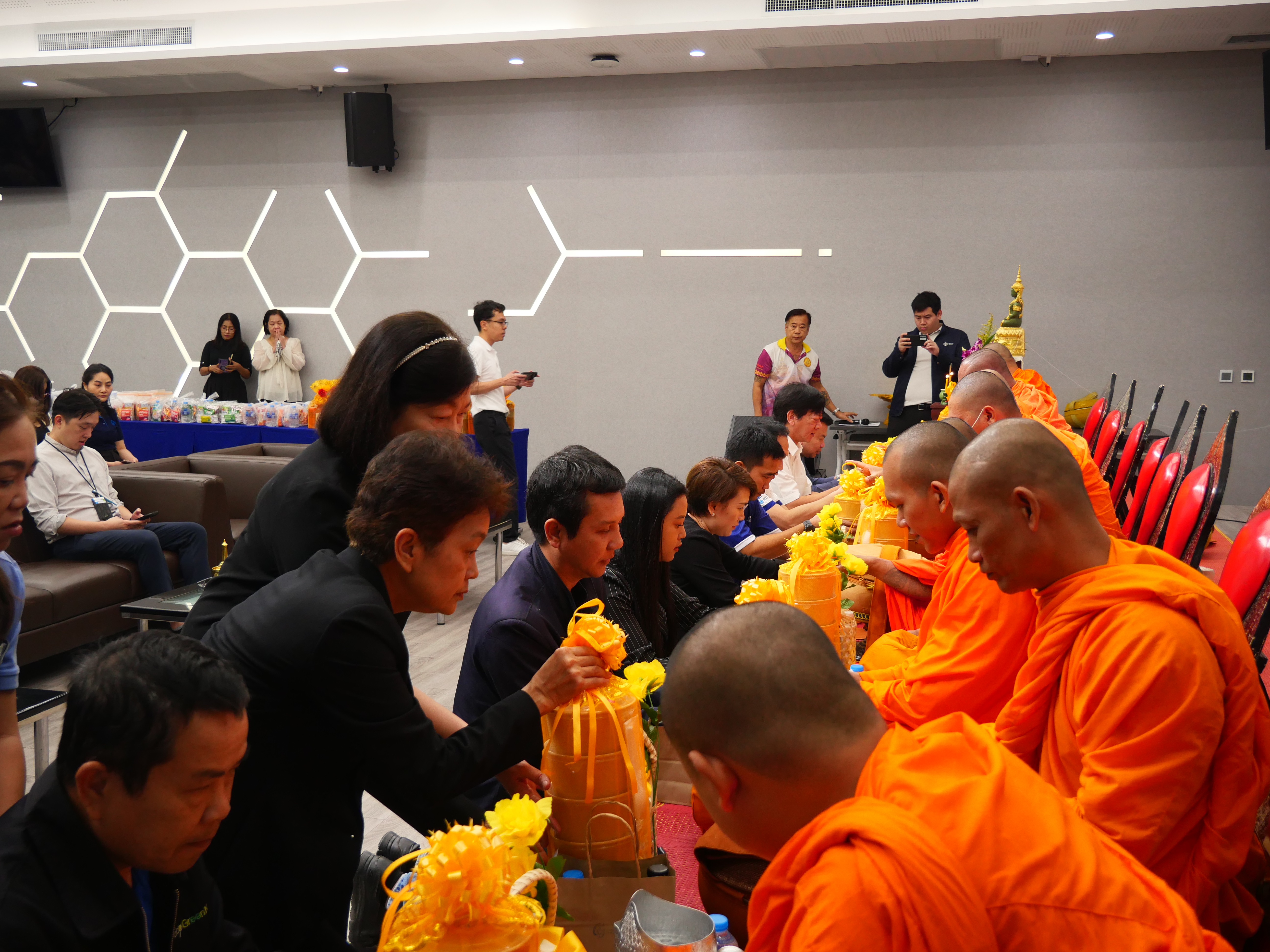 <p>สำนักงานนิคมอุตสาหกรรมบางปู (สนป.) นำโดยนายมานิต อินเมฆ ผอ.สนป., นายธาตรี เล็กสุวัฒน์ ผช.ผอ.สนป., ผู้พัฒนา, คู่ค้าร่วม, พนักงานสนป., ผู้แทนชุมชนโดยรอบนิคมฯ และผู้ประกอบการในนิคมฯ จัดกิจกรรมทำบุญตักบาตรเนื่องในวันขึ้นปีใหม่ ในวันพุธที่ 7 มกราคม 2569 เวลา 09.00 - 11.00 น. โดยมีการถวายภัตตาหารเพล แด่พระสงฆ์จำนวน 9 รูป ต่อด้วยการตักบาตรอาหารแห้งร่วมกัน ณ ห้องประชุมใหญ่ ชั้น 1 จากนั้นพระสงฆ์เจริญพระพุทธมนต์เพื่อเป็นสิริมงคลแก่ผู้บริหาร ผู้พัฒนา คู่ค้าร่วม ผู้แทนชุมชน ผู้ประกอบการ และพนักงาน</p>