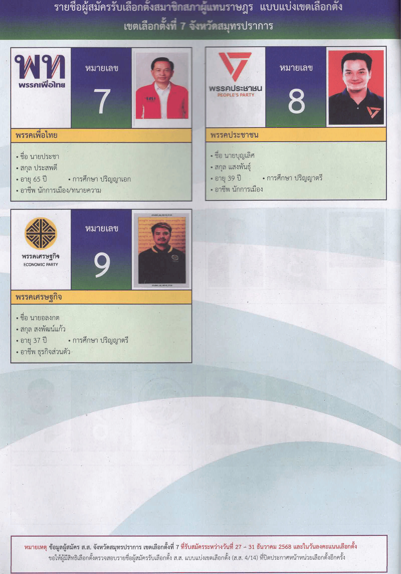 เขตการเลือกตั้งที่ 7 ในวันอาทิตย์ที่ 8 กุมภาพันธ์ 2569 เวลา 8.00-17.00 น. ณ ที่เลือกตั้งที่ท่านมีชื่อ