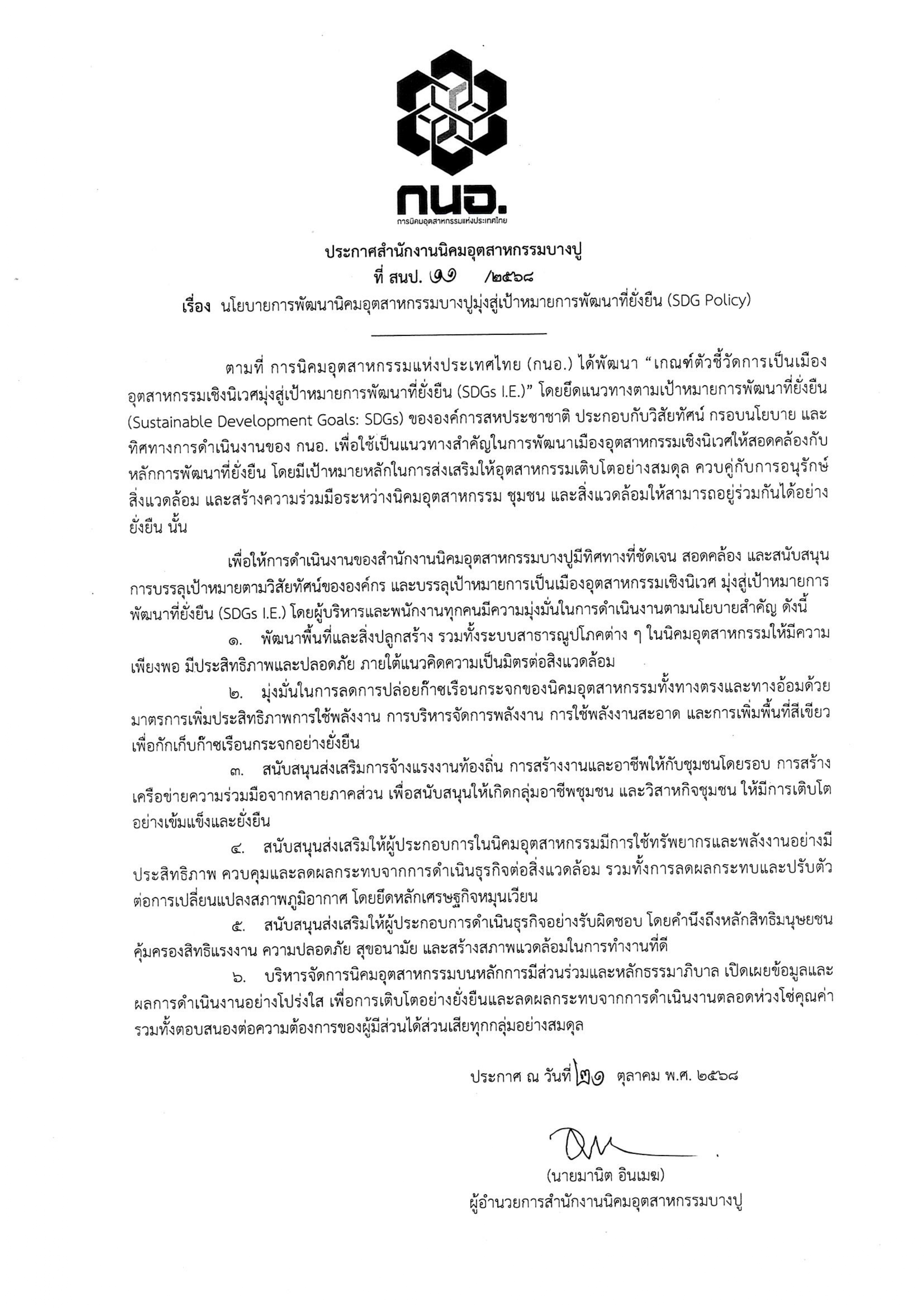 นโยบายการพัฒนานิคมอุตสาหกรรมบางปูมุ่งสู่เป้าหมายการพัฒนาที่ยั่งยืน (SDG Policy)